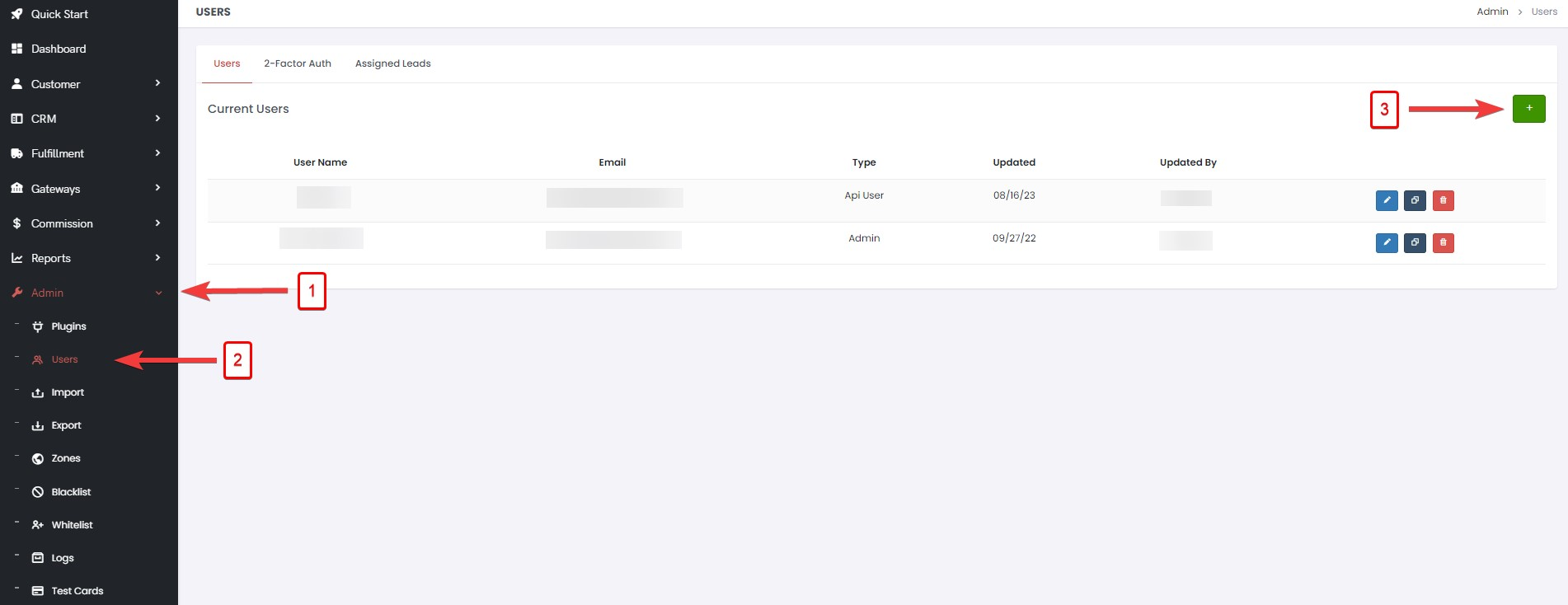 * S*elect **Admin*****&#x20;>** then click on **Users**.