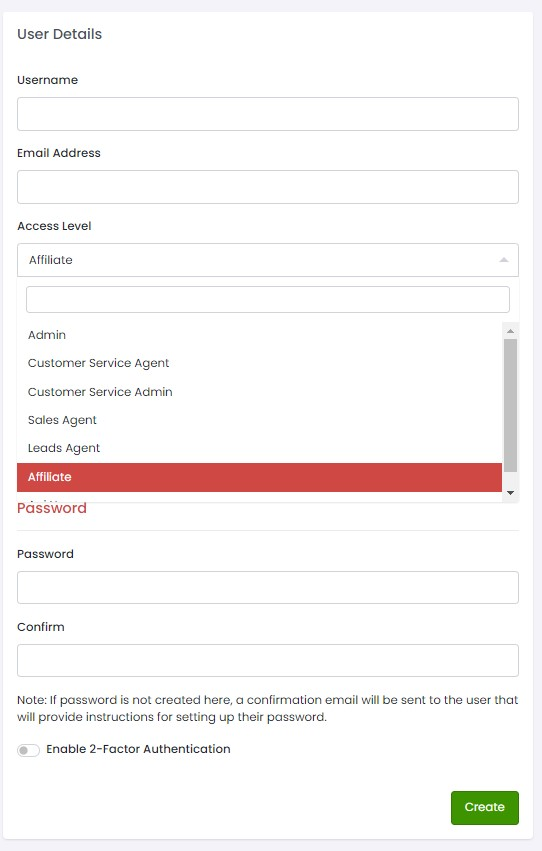 **NOTE:** *Affiliate Users will only be able to see their own data, not another affiliates.*