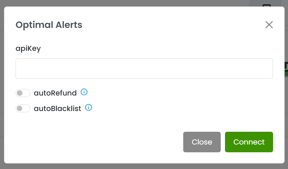 Choose to automatically **refund** and/or **blacklist** when an alert is received. The automatic refund is a full refund. The automatic blacklist will blacklist email, phone, IP address, and billing address. It will also cancel all active subscriptions for the customer.