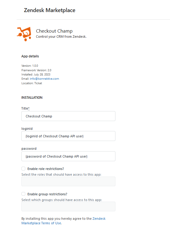 **Note: Konnektive users can still use the “Checkout Champ” Zendesk application. A second app under the name “Konnektive CRM” is still in review by Zendesk.**
