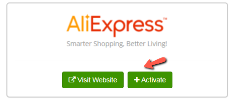 Click the green **Activate** button to activate **AliExpress**