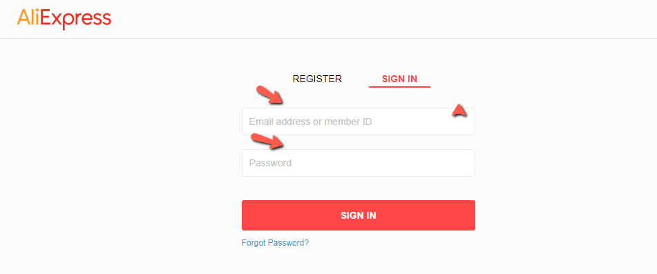Sign in on AliExpress site