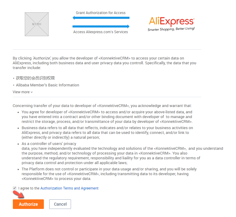 Click Authorization to authorize Konnektive accessing your data