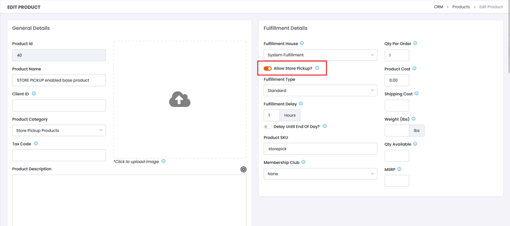 Once a store pickup location has been created, base products must be enabled for store pickup.