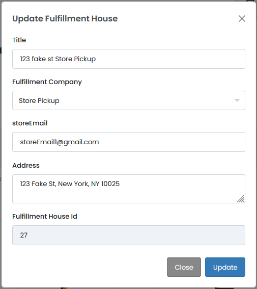 Once the store pickup location is created, it will show the Fulfillment House Id.