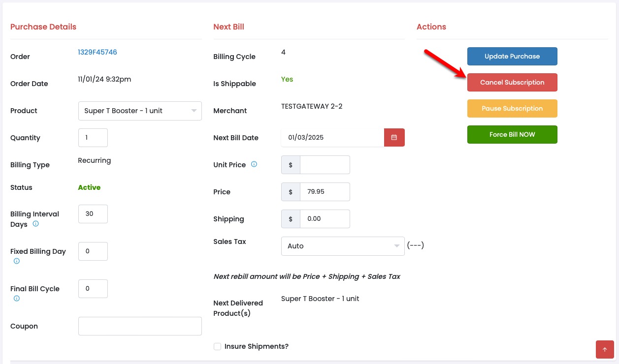 Inside the Purchase Details page *click* the red **Cancel Subscription** butto&#x6E;**.**