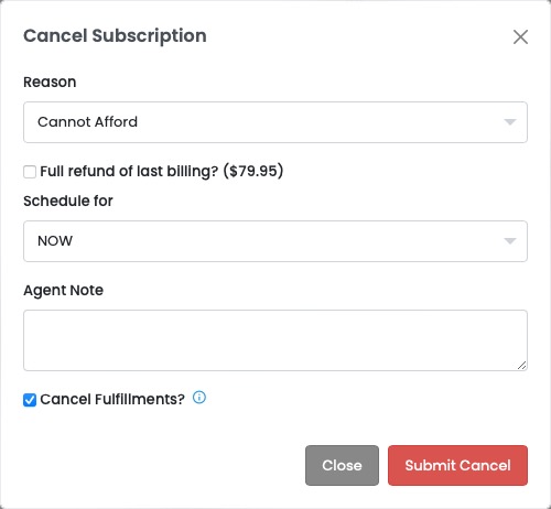 * **Next Successful Billing** - After the next successful billing cycle their Subscription will automatically cancel.