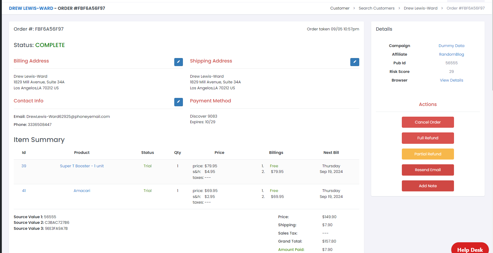Interact with the customer's purchase by either *clicking* on the **Order ID** or the **Product Name** in the **Order** section:
