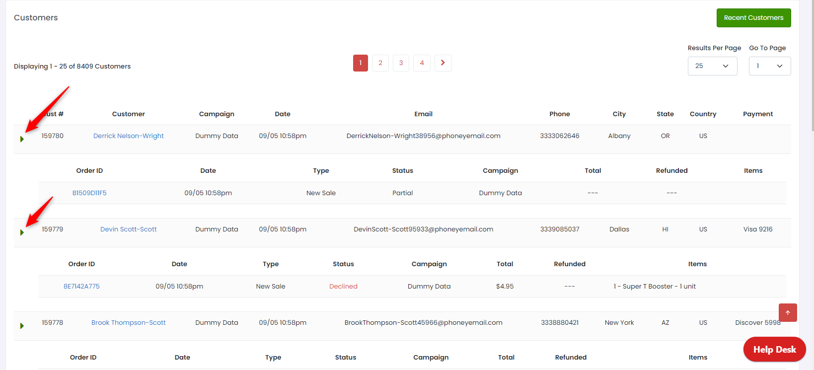 You can expand each customer to view more details.