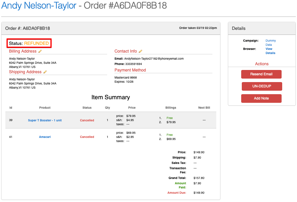 **Note:** Using either option, you can cancel the order after the refund by *selecting* the **Cancel Order After Refund?** box.