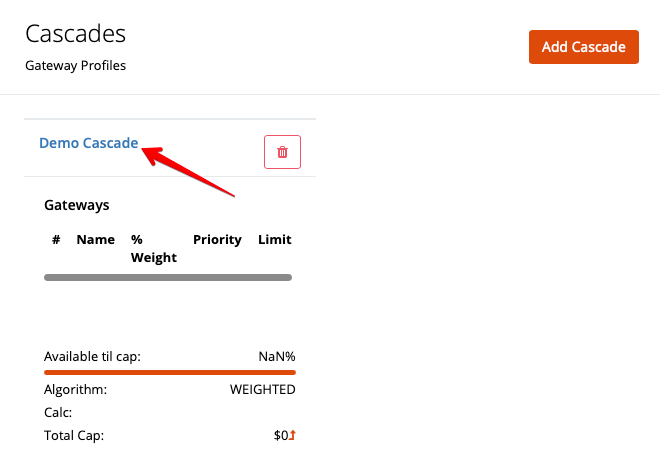 After initially creating the profile, you will be redirected back to the Cascade Profiles page. From here, click on the name of the profile to edit and add gateways.