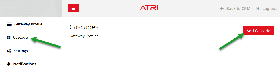You also have the ability to apply a cascade directly to a gateway inside the CRM. This will override any other cascade settings that the gateway is set to follow (via ATRI gateway profiles).