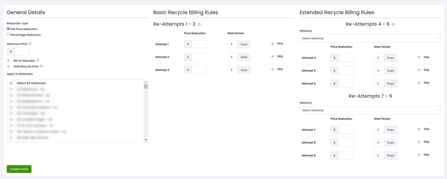 Select FlexEcom as the Gateway for Re-Attempts 4-6 or 7-9 or Final Attempt