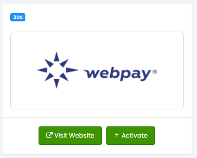 Go to Gateways | Gateway Integrations and select the WEBPAY button. Click on +Activate.